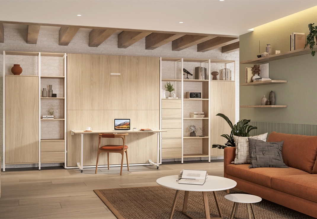 La scrivania Leo è una soluzione salvaspazio perfetta per chi ha bisogno di un comodo punto di lavoro senza occupare troppo spazio. Si integra nei letti a ribalta, trasformandosi in un supporto pratico e funzionale, ideale per ogni tipo di ambiente.